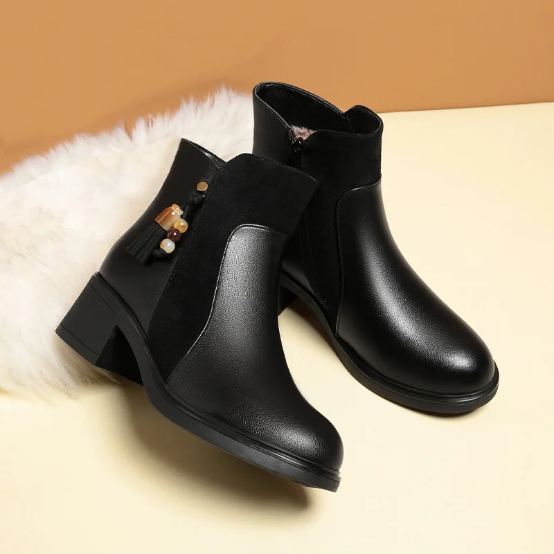 این بوتها از چرم اسپلیت باکیفیت ساخته شدهاند و ضدآب بوده و برای شرایط سرد زمستانی کاملاً مناسب هستند. آستر و کفی مخملی، گرما و نرمی فوقالعادهای ایجاد کرده و پاهای شما را در هوای سرد گرم نگه میدارد. مناسب برای استفاده روزمره در زمستان یا استایل شهری، این نیمبوتهای چرمی ترکیبی از زیبایی، کارایی و راحتی را برای زن مدرن و بااعتمادبهنفس ارائه میدهند.